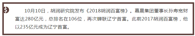 嘉晨集團董事長孫壽寬280億身家再次問鼎遼寧首富