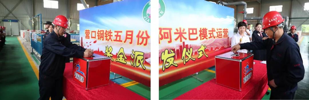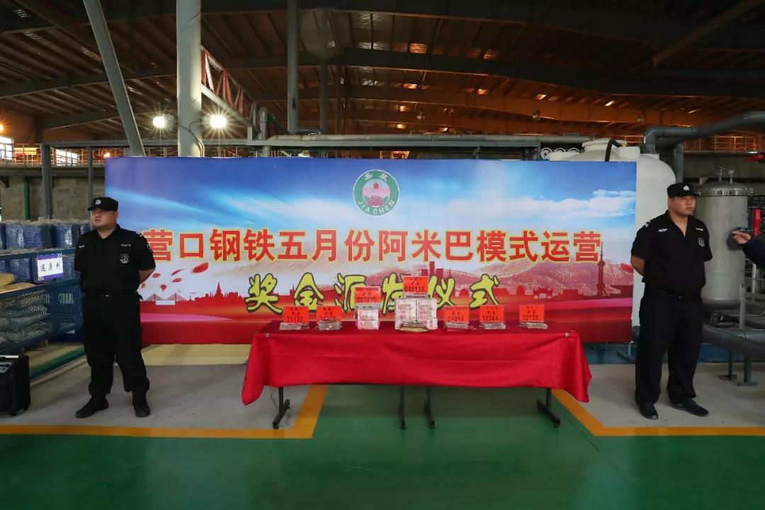 2019年6月10日下午16:00時,營鋼公司阿米巴合伙人及小組組長共計350余人,在動力部污水處理站成功舉行了5月份阿米巴經(jīng)營獎金派發(fā)儀式。嘉晨集團孫朝英總裁與會并做重要指示。