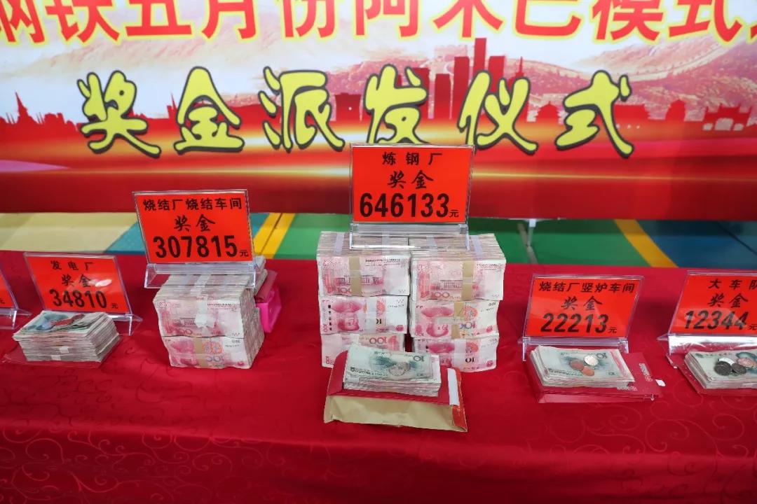 按照阿米巴經(jīng)營目標考核,煉鋼廠本月派發(fā)獎金646133元、燒結廠燒結車間派發(fā)獎金307815元、豎爐車間派發(fā)獎金22213元、軋鋼廠派發(fā)獎金21132元、發(fā)電廠派發(fā)獎金34810元、動力部派發(fā)獎金12133元、運輸公司派發(fā)獎金12344元。獲獎單位領導逐次上臺領獎,一個字“爽”??!