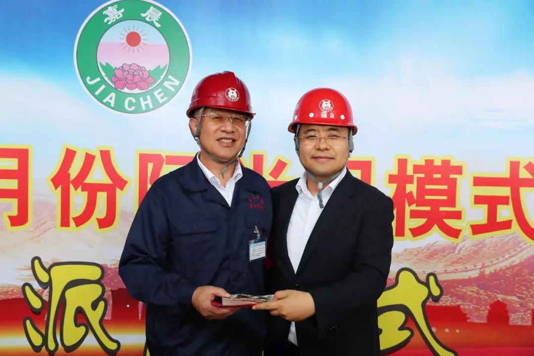 集團總裁孫總親自給動力部孫廣福部長頒發(fā)獎金