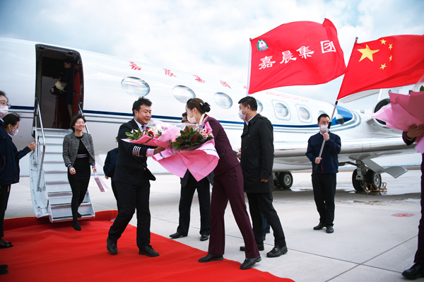 接機(jī)儀式上,嘉晨集團(tuán)董事長(zhǎng)孫壽寬致辭。嘉晨集團(tuán)是我市本土成長(zhǎng)起來(lái)的全國(guó)知名500強(qiáng)企業(yè)。創(chuàng)新能力強(qiáng),發(fā)展?jié)摿Υ?,產(chǎn)品質(zhì)量好,近年來(lái),無(wú)論鐵礦石、原煤等原材料的進(jìn)口,還是“超純鎂砂”高科技產(chǎn)品的出口,僅每年國(guó)際貿(mào)易所產(chǎn)生的經(jīng)濟(jì)價(jià)值已遠(yuǎn)遠(yuǎn)超越飛機(jī)價(jià)值本身。孫壽寬表示,在社會(huì)需要的特殊時(shí)期,作為本地民營(yíng)企業(yè),飛機(jī)也可以第一時(shí)間用于支持火線馳援等,為全社會(huì)提供更多力所能及的幫助。