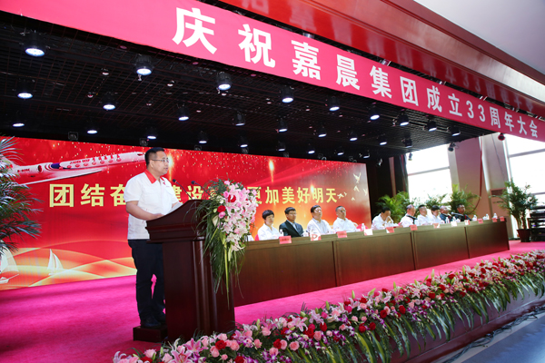 活動一開始,由董事長孫壽寬發(fā)表了激動人心的講話。他指出,33年前我們在一個雜草叢生、滿目荒涼的一個小山坡的廢墟上,開始了我們嘉晨人的創(chuàng)業(yè)歷程。33年來,我們以不屈不撓的奮斗使這個企業(yè)飛躍的向前發(fā)展壯大。33年來,我們始終堅持奮斗、誠信、發(fā)展、富強的宗旨和遵循以人為本、科學發(fā)展的理念。經(jīng)過全體嘉晨人33年不懈的奮斗,我們從小到大,從弱到強,發(fā)展到今天我們已經(jīng)成為有職工近萬人,總資產(chǎn)650多億元的跨行業(yè)、跨地區(qū)的國家級大型企業(yè)集團。